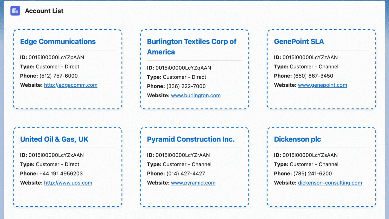 SELECT Id, Name, Type, Phone, Website, sequence__c